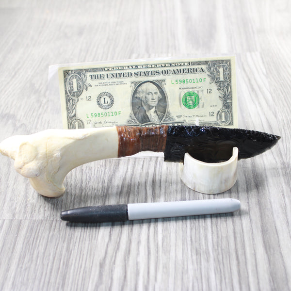 The handle is made from a deer leg bone.
