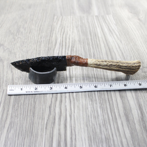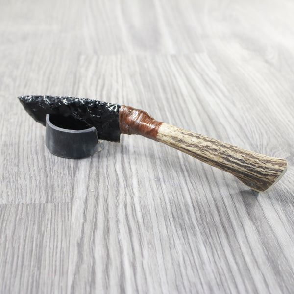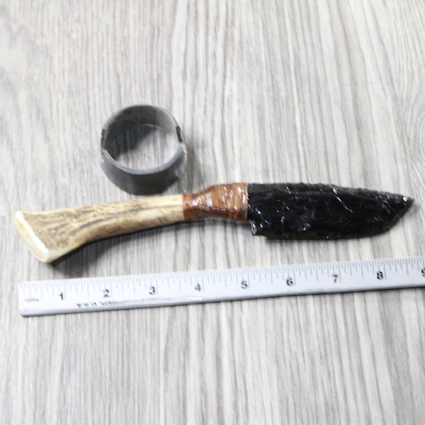 Elk Antler Handle Obsidian Blade Ornamental Knife #815n Mountain Man Knife