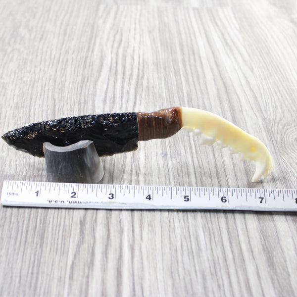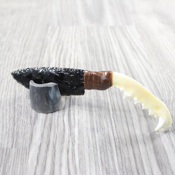 The handle is made from a fox jawbone.