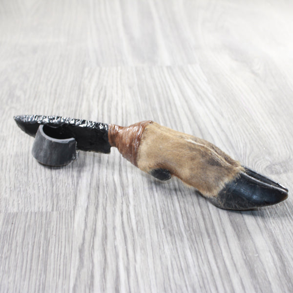 The handle is made from a deer foot.