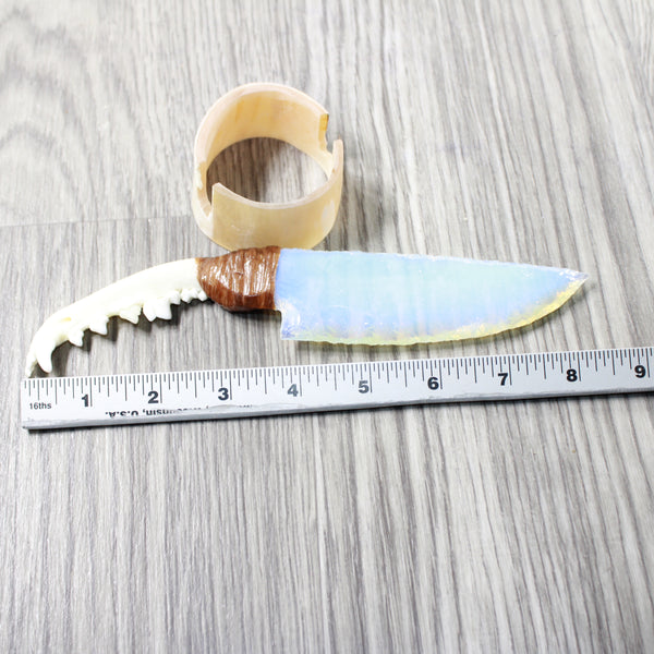 Fox Jaw Handle Opalite Blade Ornamental Knife #305n Mountain Man Knife