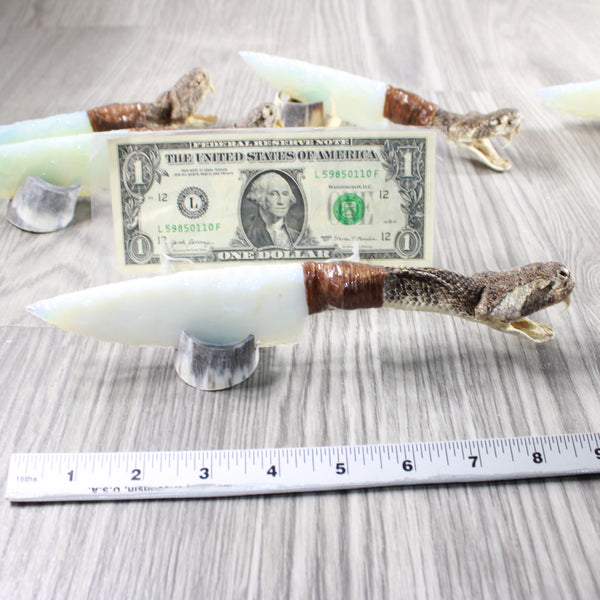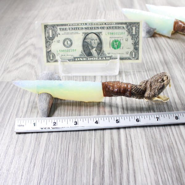 5 Rattlesnake Head Handle Opalite Blade Ornamental Knives # myak528 Mountain Man Knife
