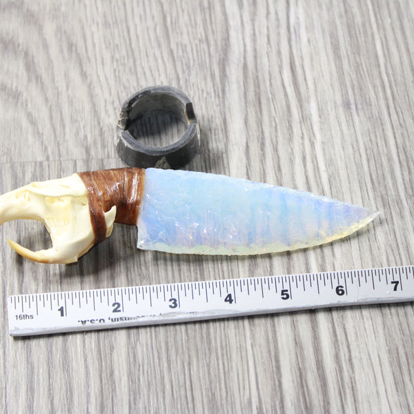 Muskrat Skull Handle Opalite Blade Ornamental Knife #0250 Mountain Man Knife
