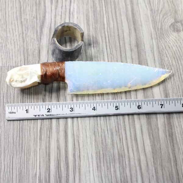 Mink Skull Handle Opalite Blade Ornamental Knife #7450 Mountain Man Knife