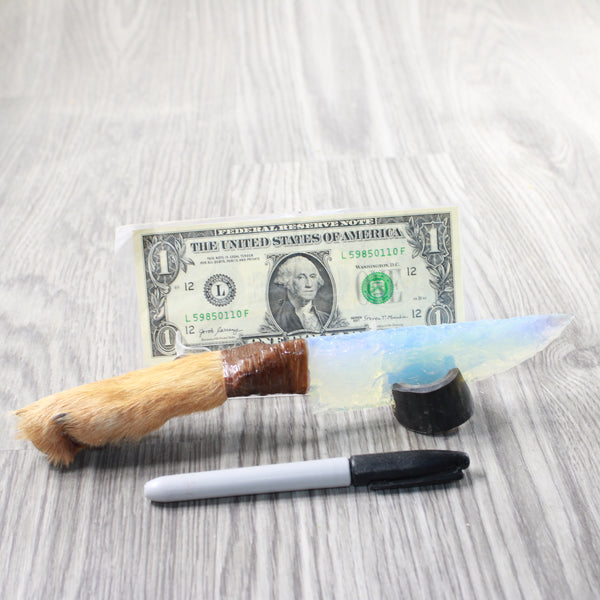 The handle is made from a coyote foot,