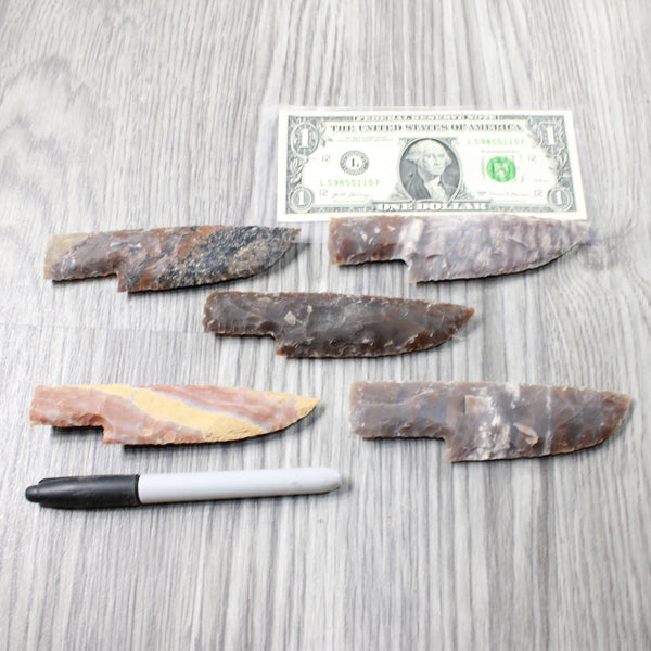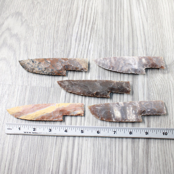 blades made out of an agate/jasper type stone.