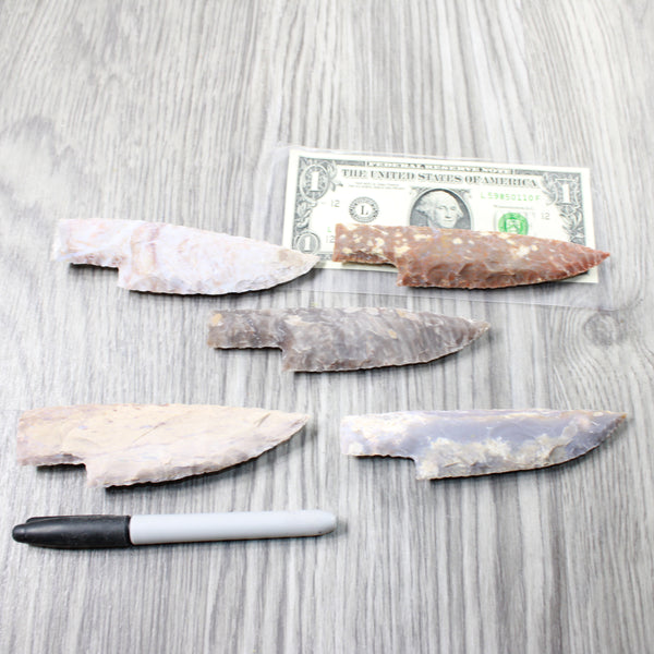 blades made out of an agate/jasper type stone.