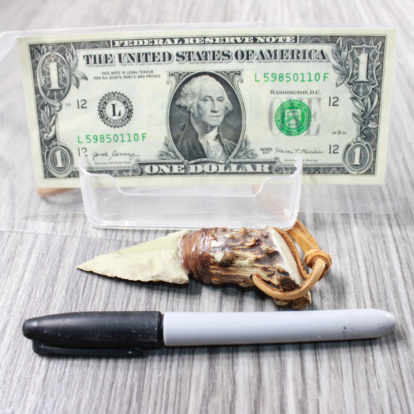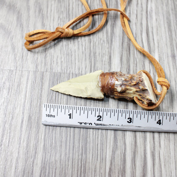 Deer Antler Crown Handle Stone Blade Knife Necklace #5157  Mountain Man Necklace