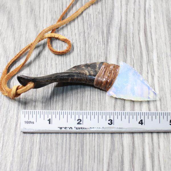 Goat Horn Handle Opalite Blade Knife Necklace #505d  Mountain Man Necklace