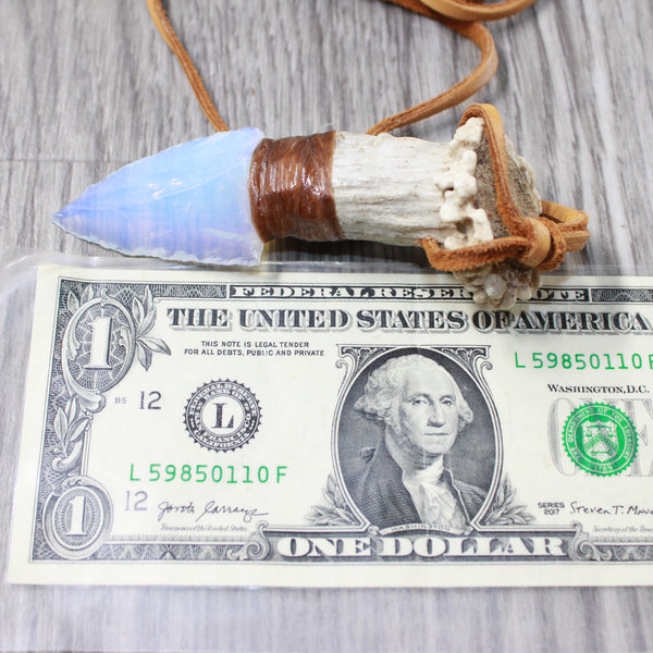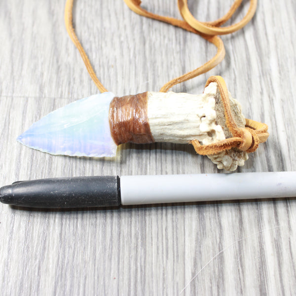Antler Crown Handle Obsidian Blade Knife Necklace #5150  Mountain Man Necklace