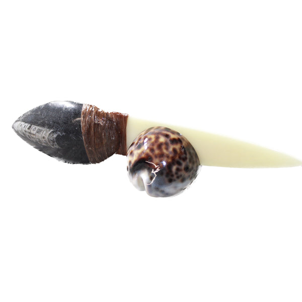 The handle is made from a Orthoceras fossil.