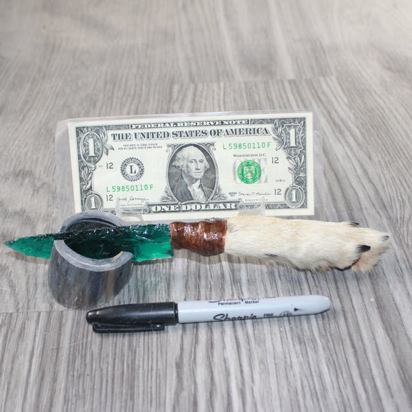 The handle is made from a coyote foot,