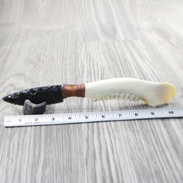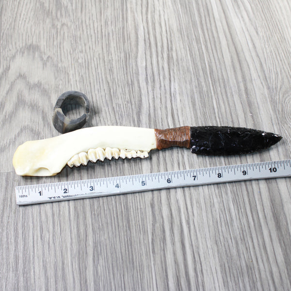 Deer Jaw Handle Obsidian Blade Ornamental Knife #1750 Mountain Man Knife