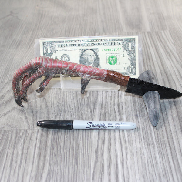 The handle is made from a turkey foot,