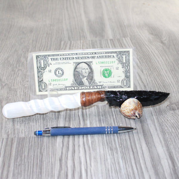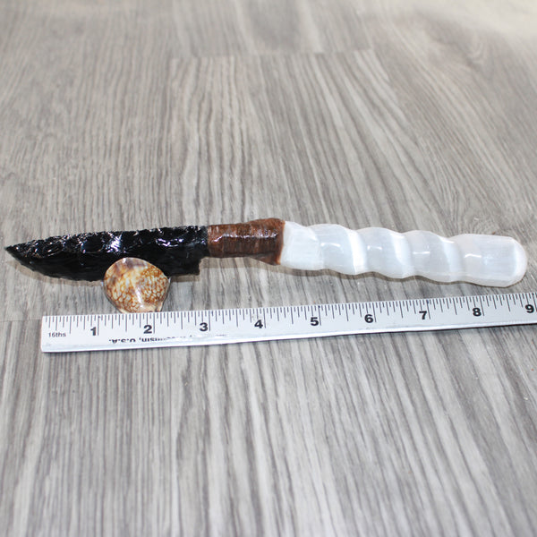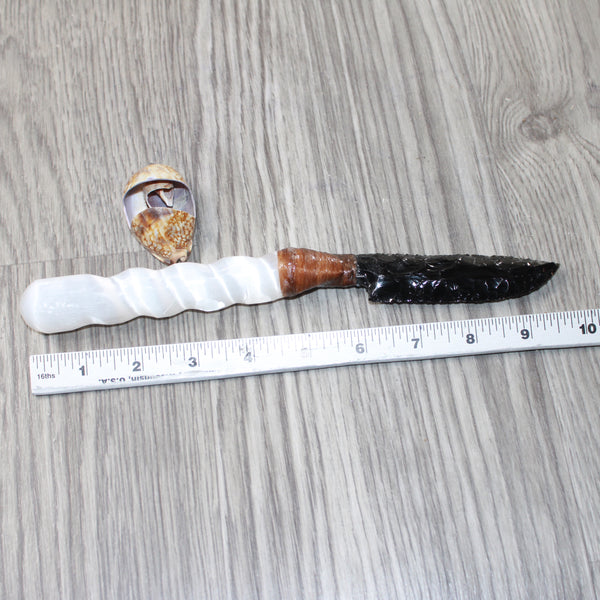 The handle is made from a selenite spiral.