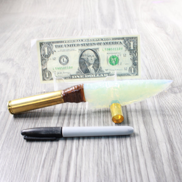 Ornamental knife with an opalite blade.